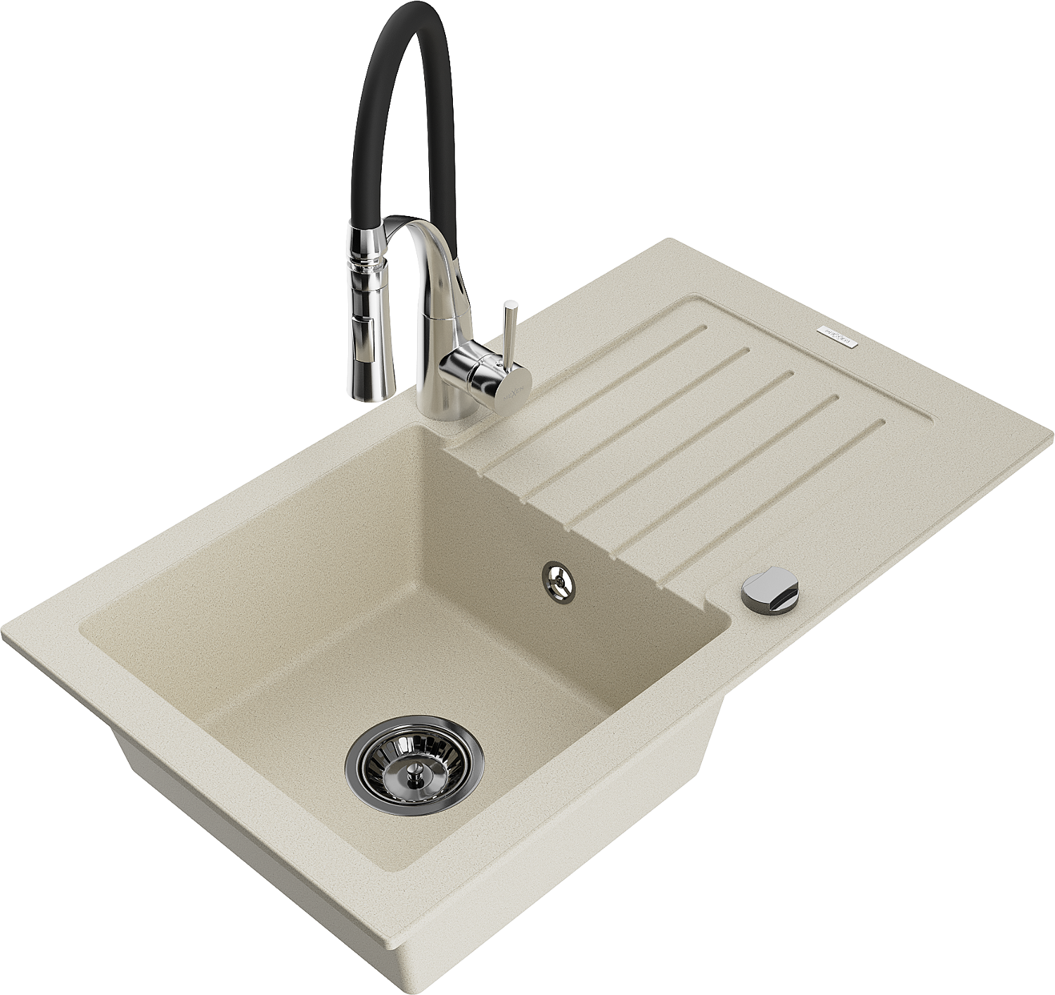 Mexen Pablo granite sink 1-bowl with drainer and Aster kitchen tap, beige - 6510-69-73450-07-B
