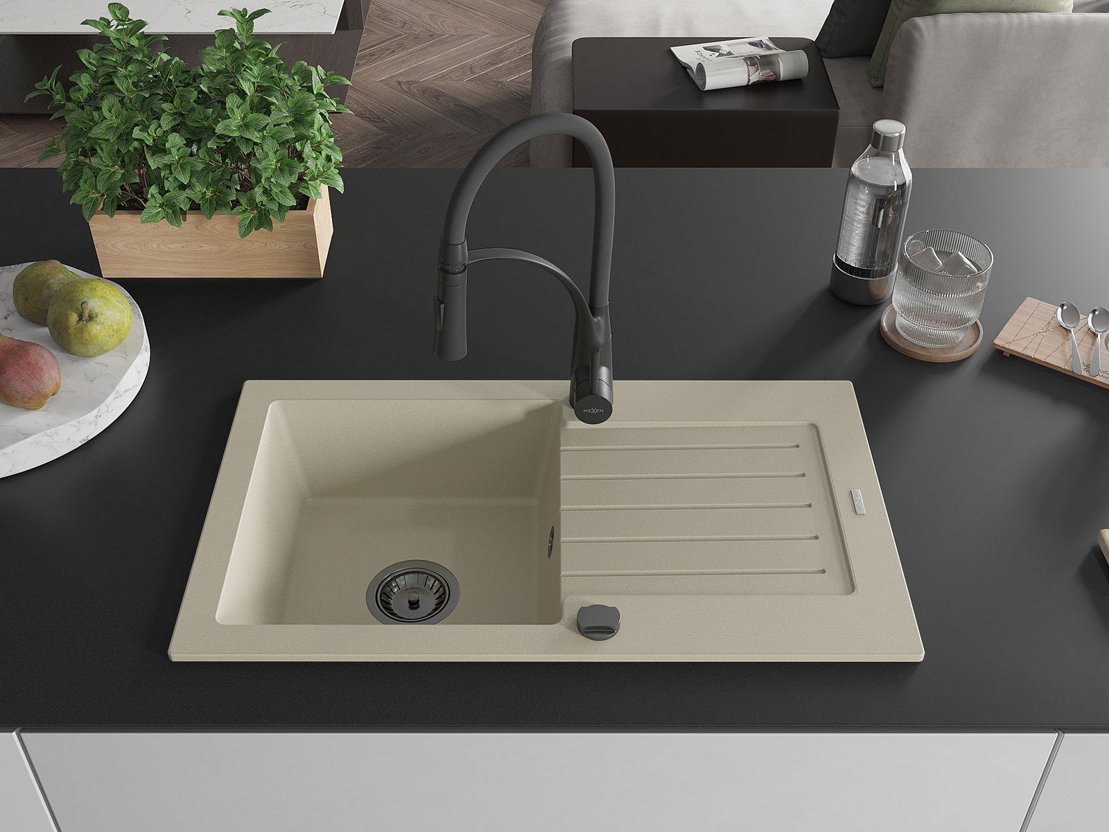 The sink is made from high-quality granite. It serves as an elegant and, above all, practical addition to any kitchen, regardless of its style. The high quality and durability of granite ensure many years of use.