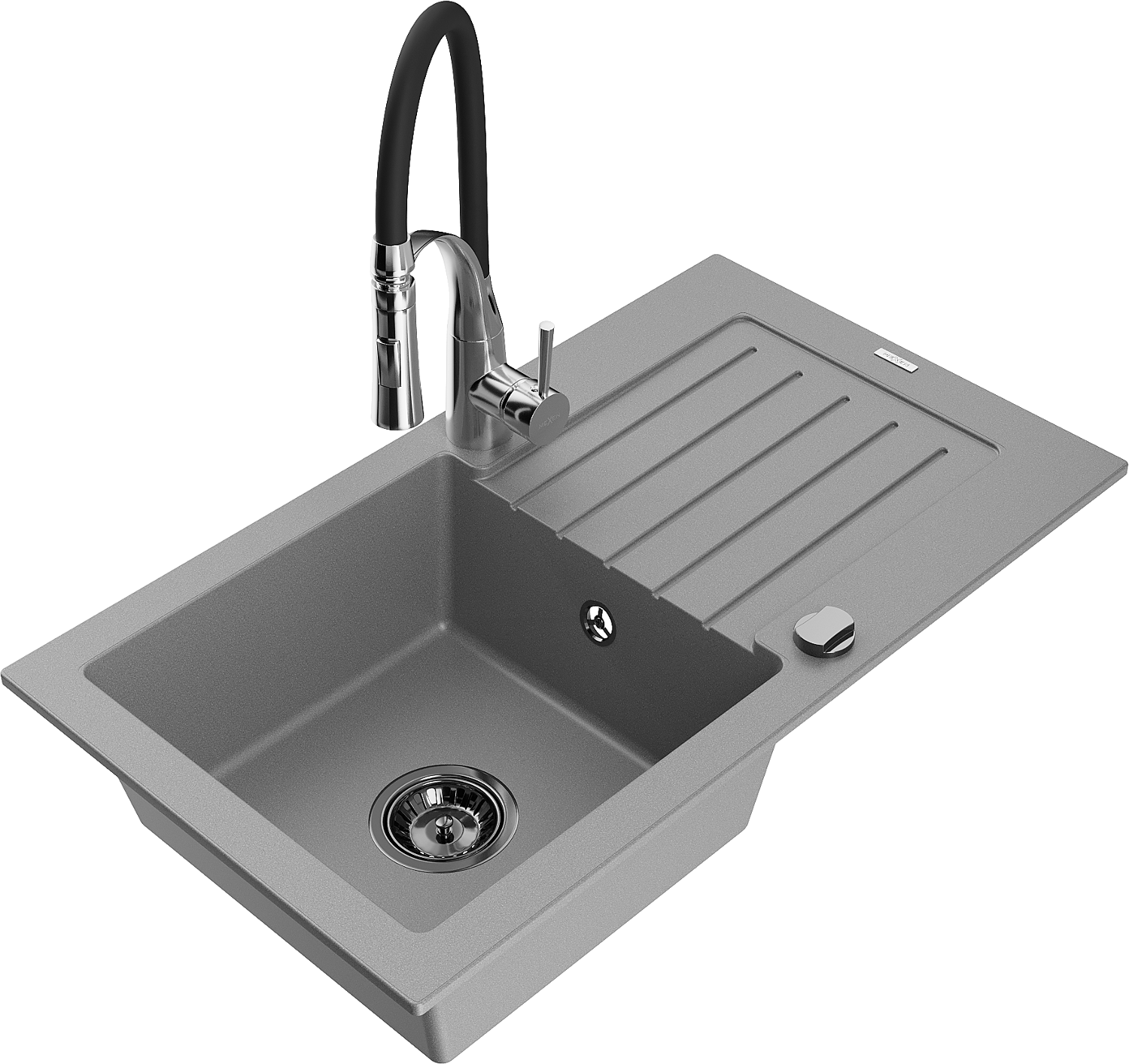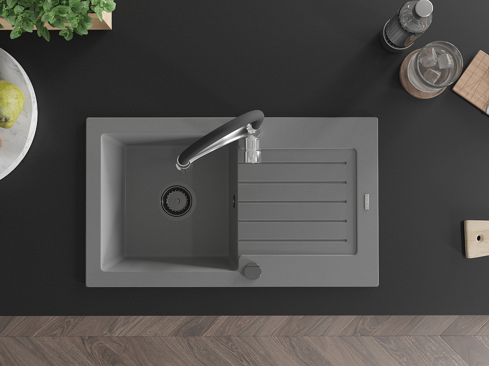 Mexen Pablo 1-bowl granite kitchen sink with drainer and Aster kitchen tap, grey - 6510-71-73450-07-B