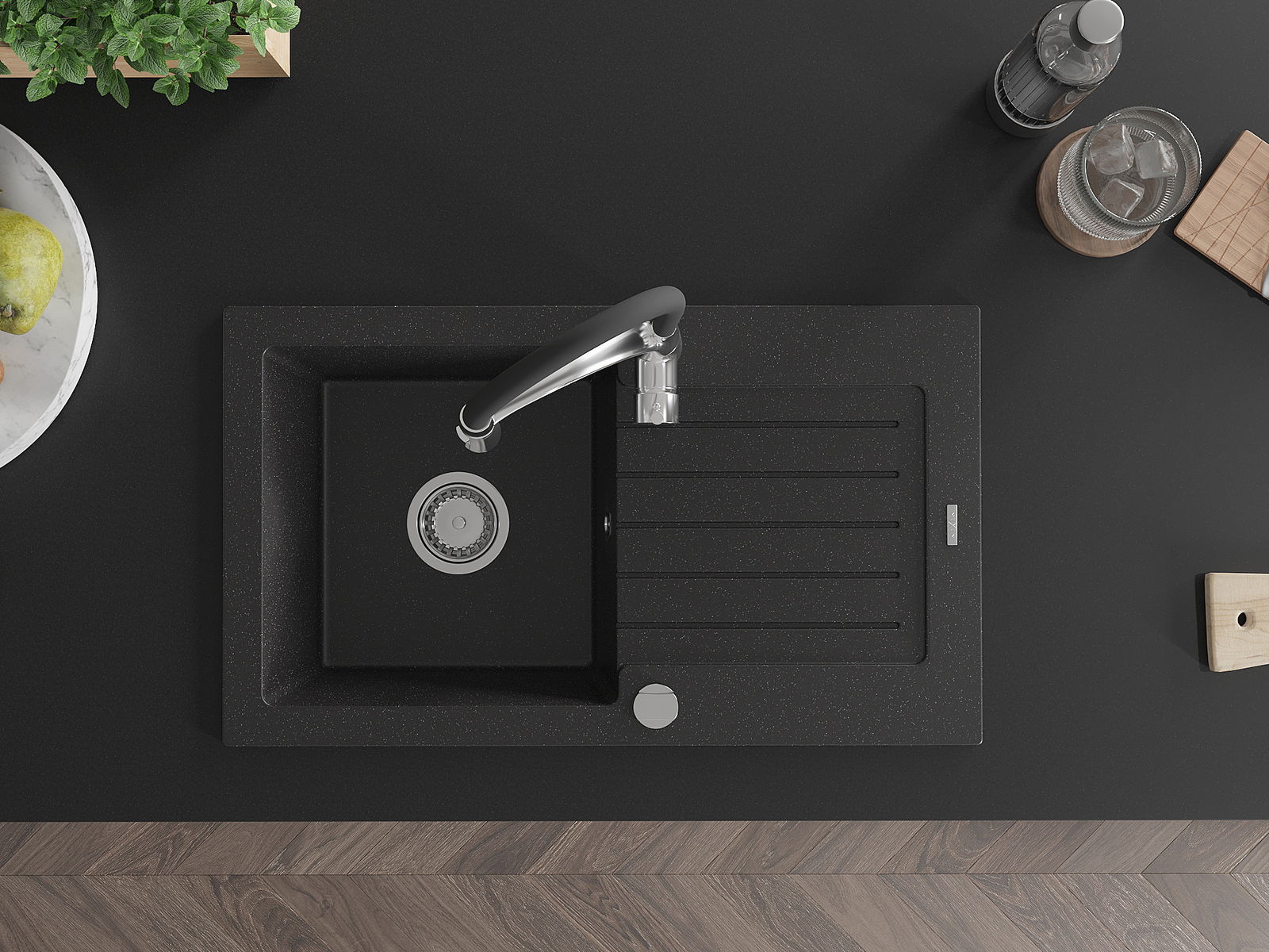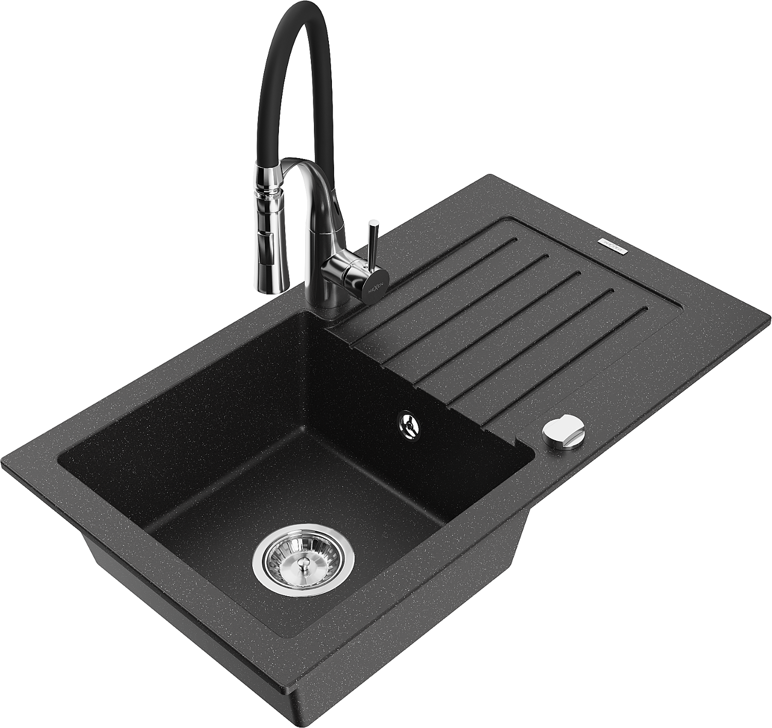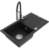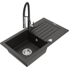 Mexen Pablo granite sink 1-bowl with drainer and Aster kitchen tap, black/silver metallic - 6510-73-73450-07