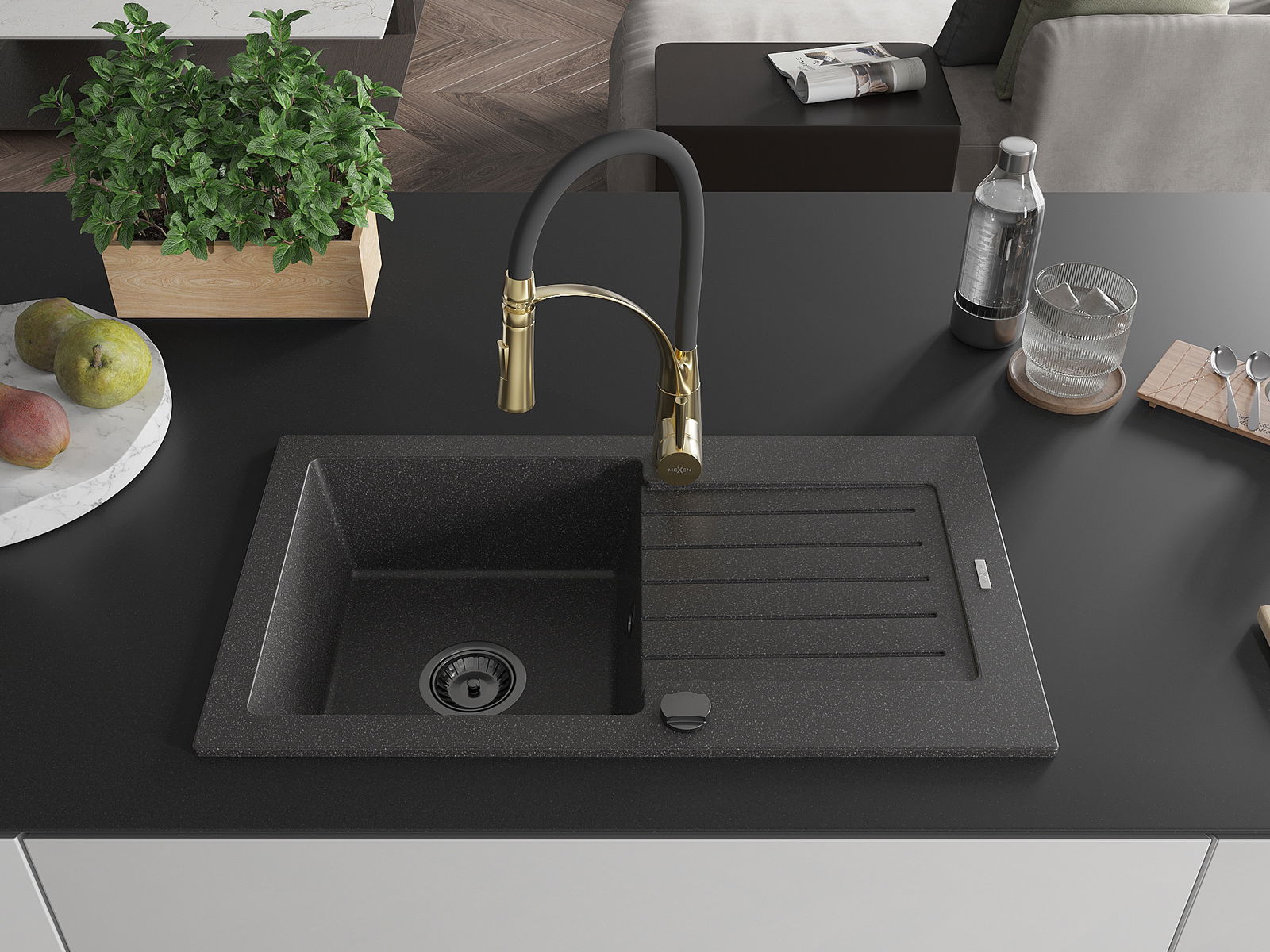 The sink is made from high-quality granite. It serves as an elegant and, above all, practical addition to any kitchen, regardless of its style. The high quality and durability of granite ensure many years of use.