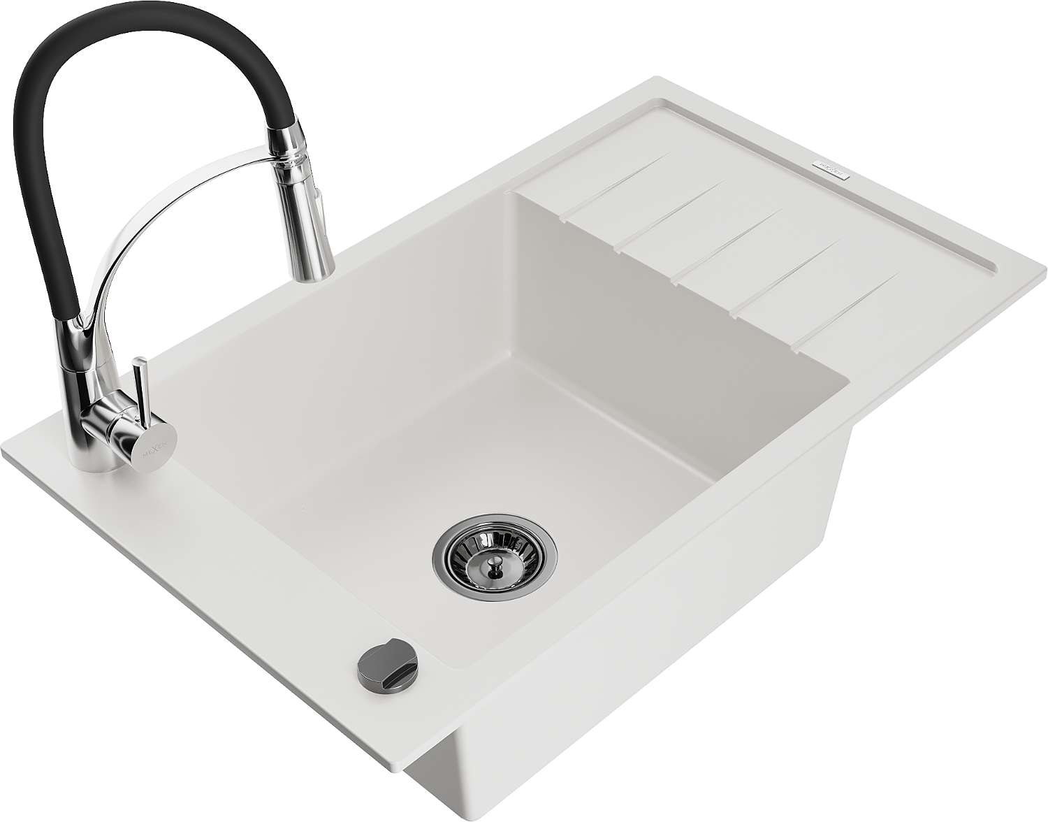 Mexen Elias granite sink 1-bowl with drainer and kitchen tap Aster, white - 6511-20-73450-07-B