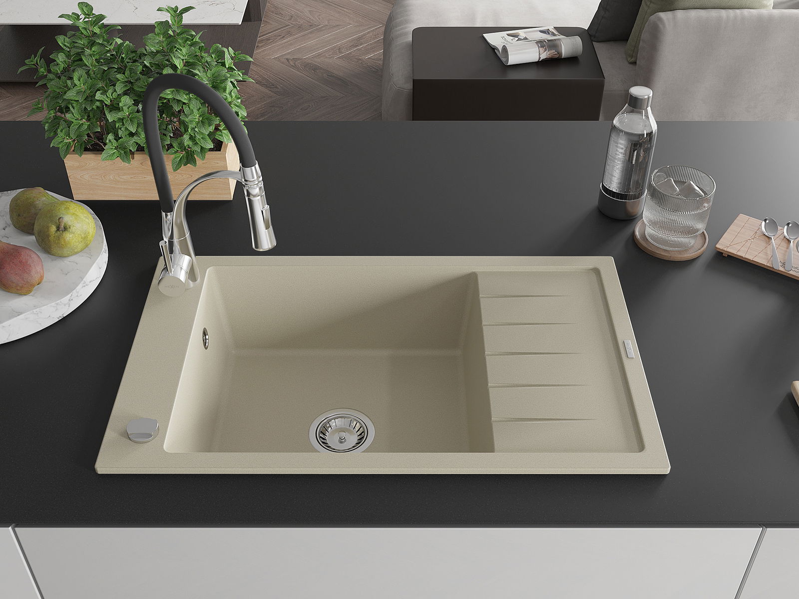 The sink is made of high quality granite. It is an elegant and, above all, practical complement to every kitchen, regardless of its style. High quality and granite durability ensure many years of use.