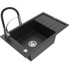 Mexen Elias 1-bowl granite sink with drainer and Aster kitchen tap, grey - 6511-71-73450-07