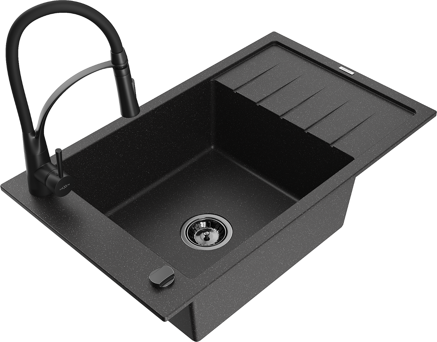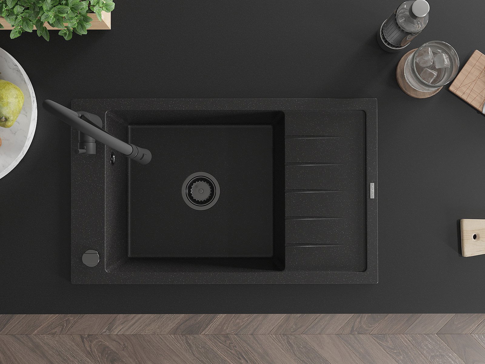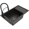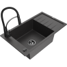 Mexen Elias granite sink 1-bowl with drainer and Aster kitchen tap, black/silver metallic - 6511-73-73450-70-B