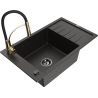 Mexen Elias granite sink 1-bowl with drainer and Aster kitchen tap, black - 6511-77-73450-57-B