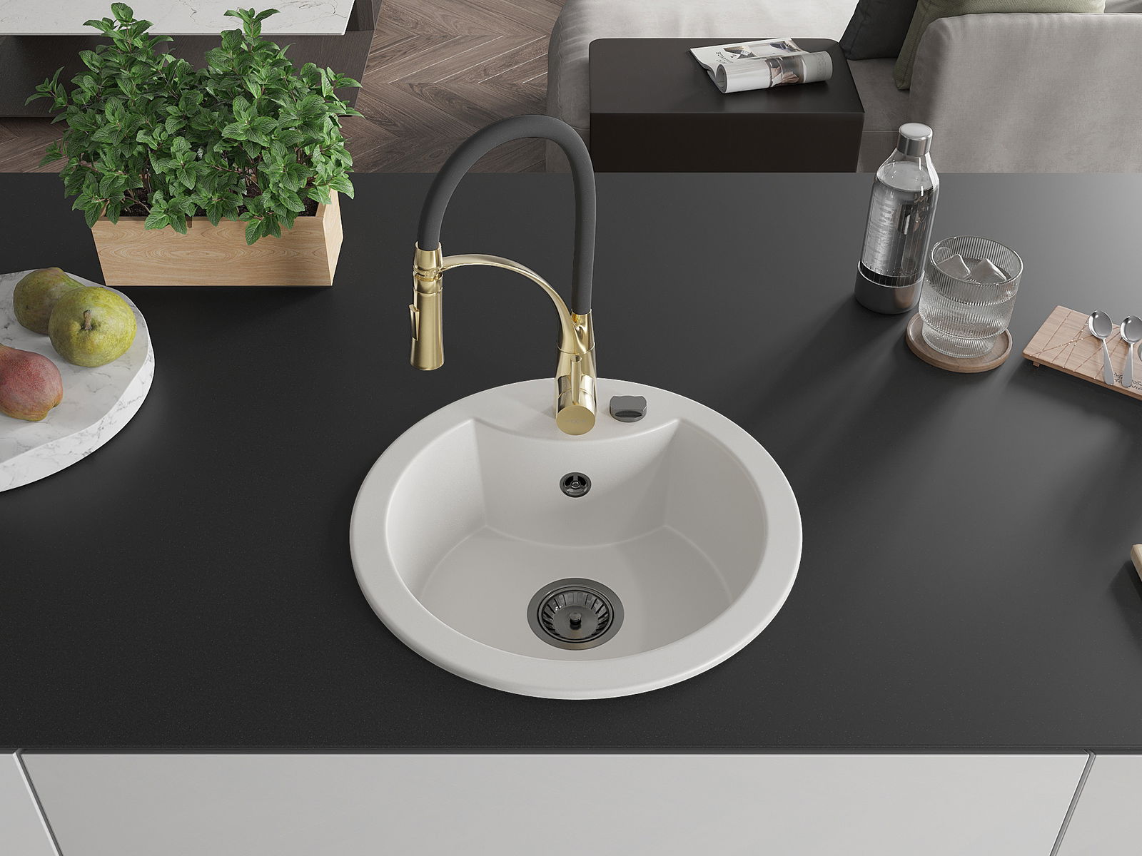 The sink is made of high quality granite. It is an elegant and, above all, practical complement to every kitchen, regardless of its style. High quality and granite durability ensure many years of use.