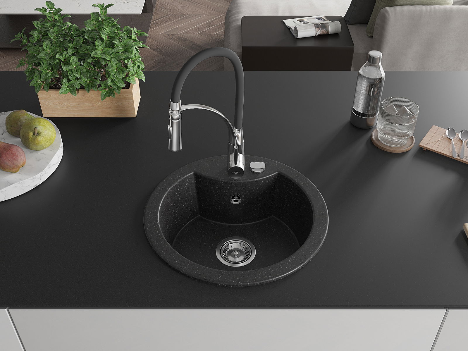 The sink is made of high quality granite. It is an elegant and, above all, practical complement to every kitchen, regardless of its style. High quality and granite durability ensure many years of use.