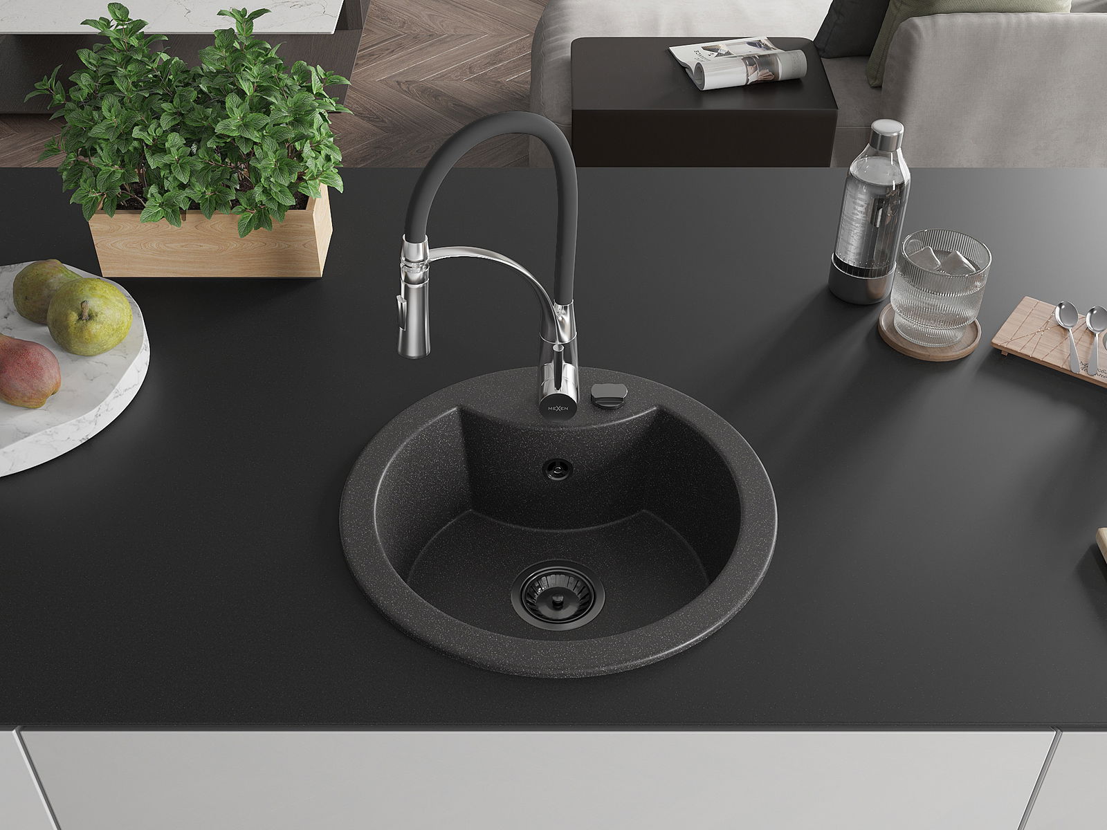 The sink is made of high quality granite. It is an elegant and, above all, practical complement to every kitchen, regardless of its style. High quality and granite durability ensure many years of use.