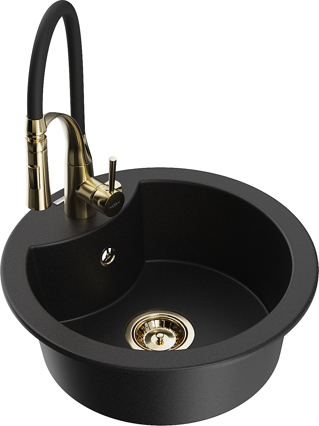 Mexen Diego granite sink with 1-bowl and Aster kitchen tap, black - 6512-77-73450-57-G