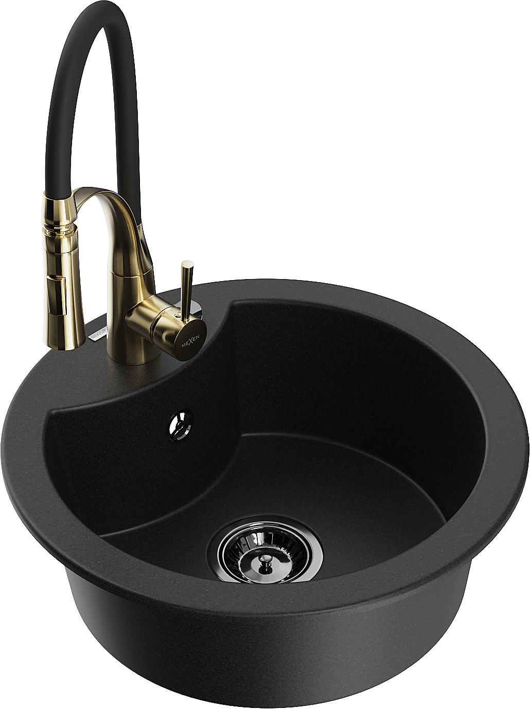 Mexen Diego Granite Sink 1-Bowl with Aster Kitchen Tap, Black - 6512-77-73450-57-B