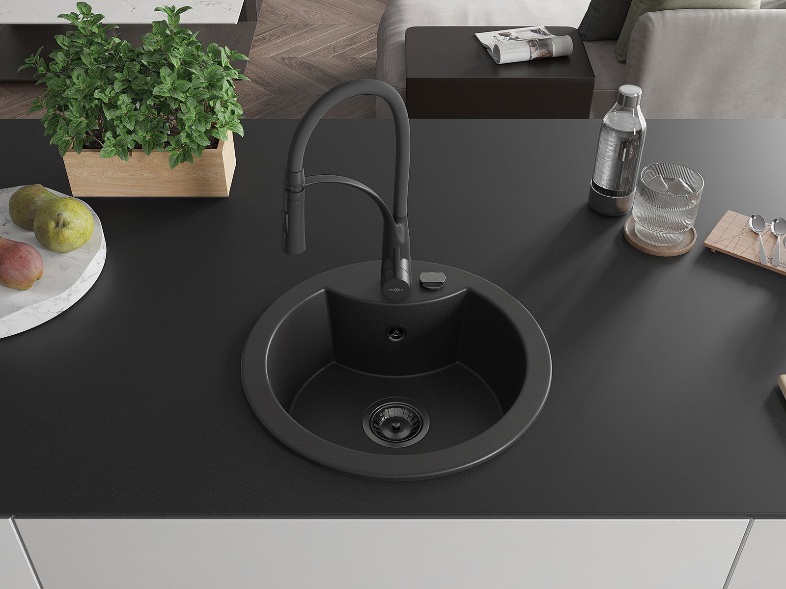 The sink is made of high quality granite. It is an elegant and, above all, practical complement to every kitchen, regardless of its style. High quality and granite durability ensure many years of use.