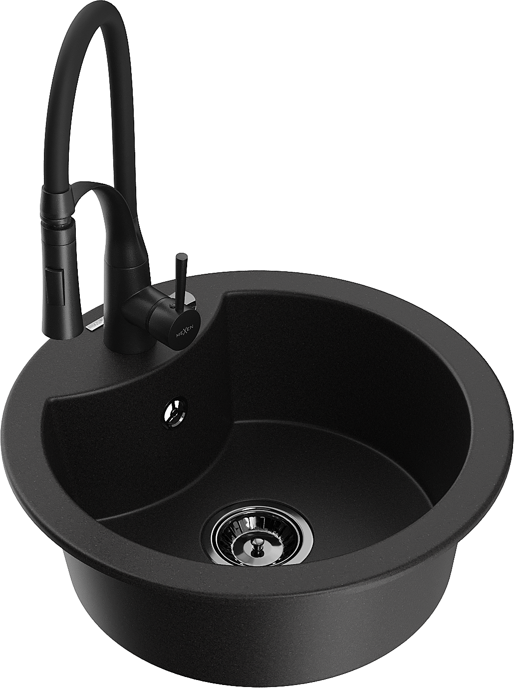 Mexen Diego 1-bowl granite kitchen sink with Aster tap, black - 6512-77-73450-70-B