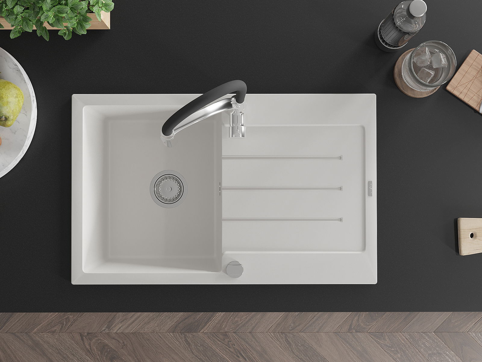 The surface of the sink is resistant to stains and discoloration, thanks to which it is easy to clean and retains its color for a long time. Aesthetic and practically complementing every kitchen.