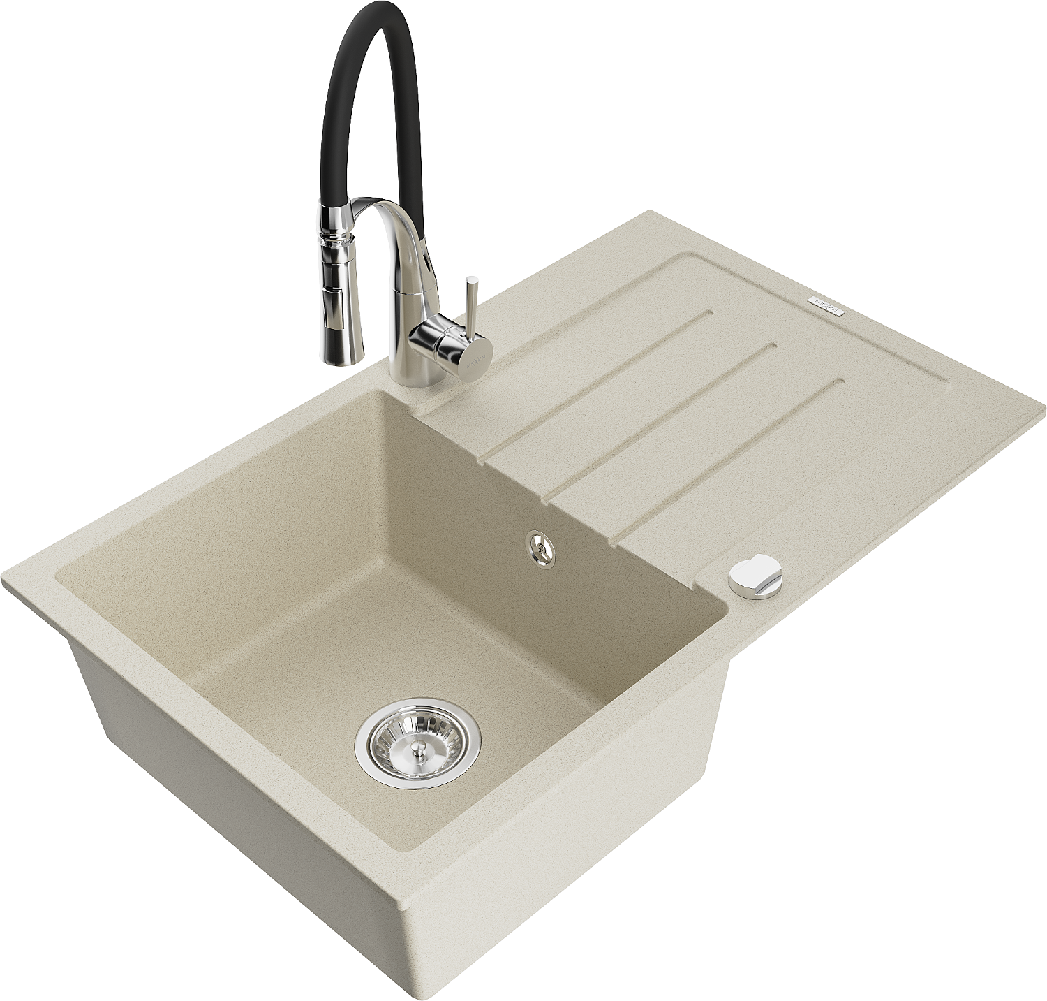 Mexen Bruno 1-bowl granite sink with drainer and Aster kitchen tap, beige - 6513-69-73450-07