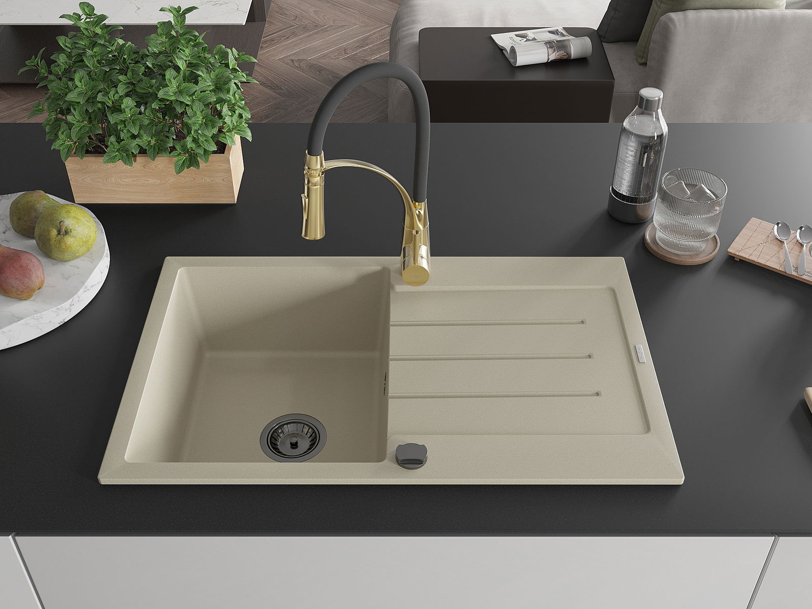The sink is made of high quality granite. It is an elegant and, above all, practical complement to every kitchen, regardless of its style. High quality and granite durability ensure many years of use.