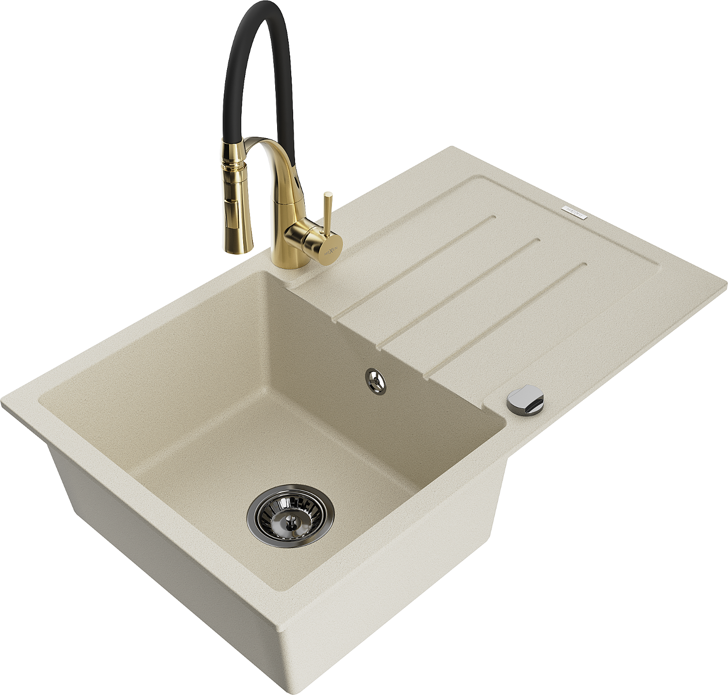 Mexen Bruno granite sink 1-bowl with drainer and Aster kitchen tap, beige - 6513-69-73450-57-B