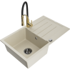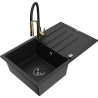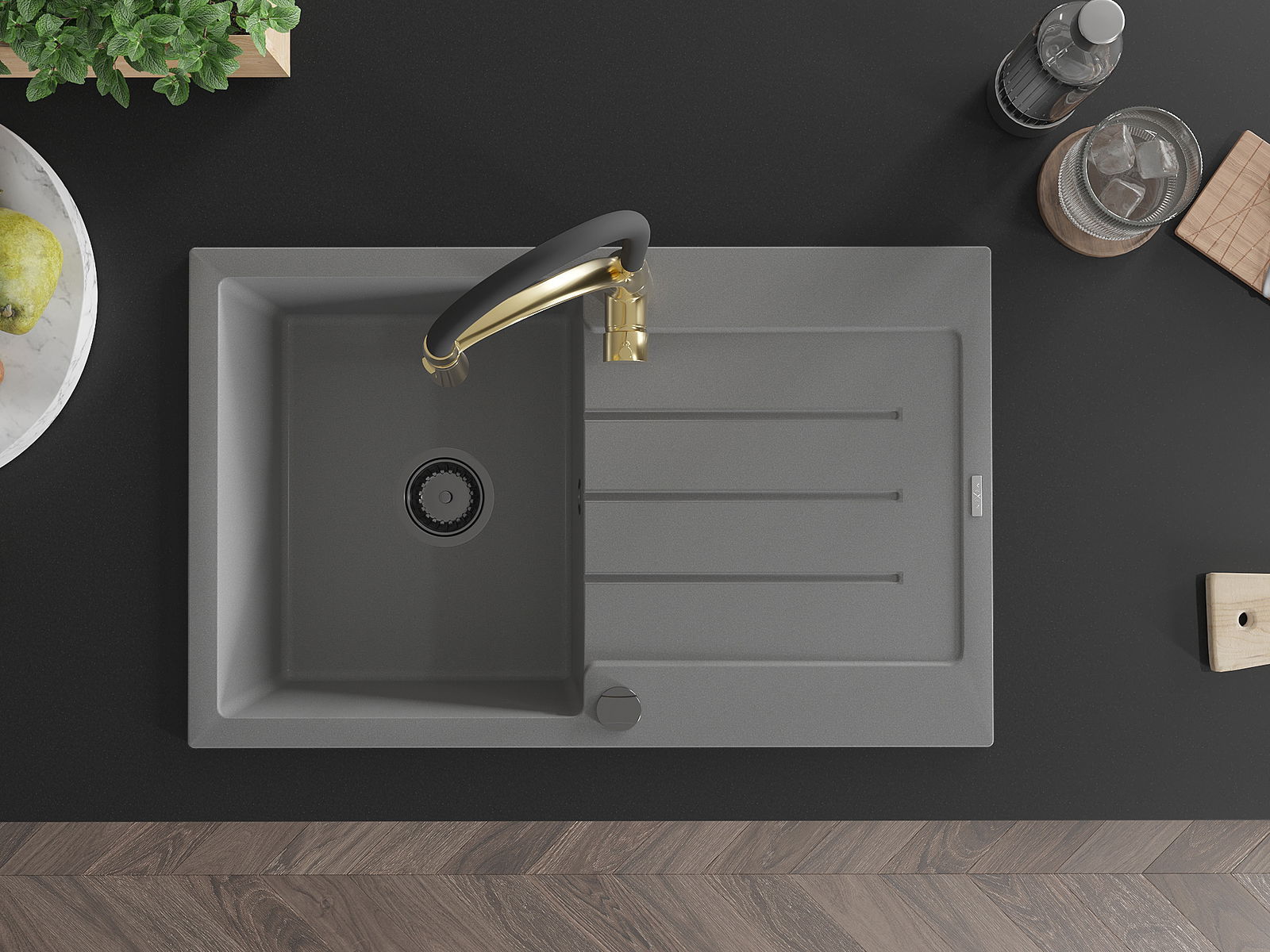 Mexen Bruno 1-bowl granite sink with drainer and Aster kitchen tap, grey - 6513-71-73450-57-B