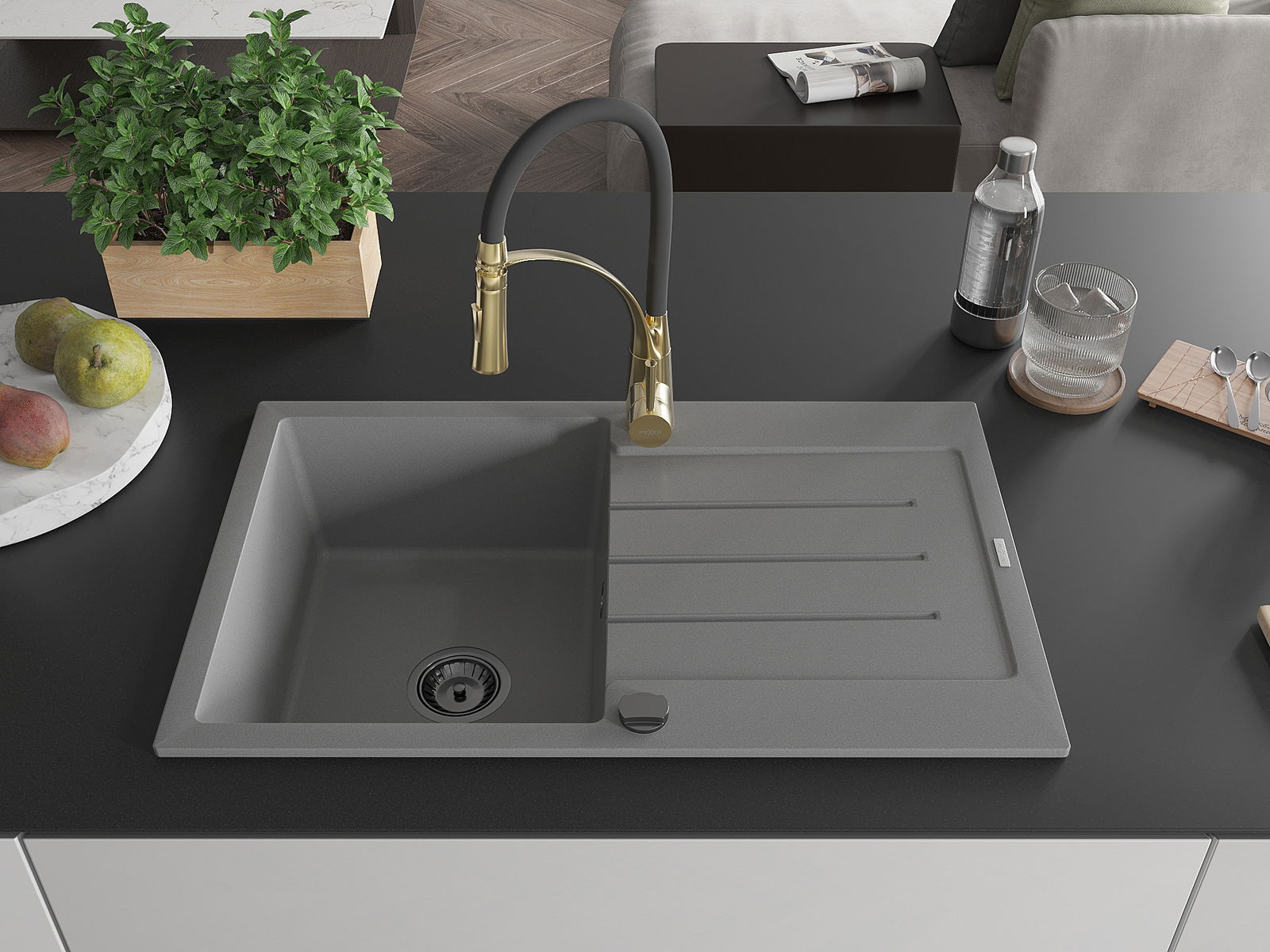 The sink is made of high quality granite. It is an elegant and, above all, practical complement to every kitchen, regardless of its style. High quality and granite durability ensure many years of use.