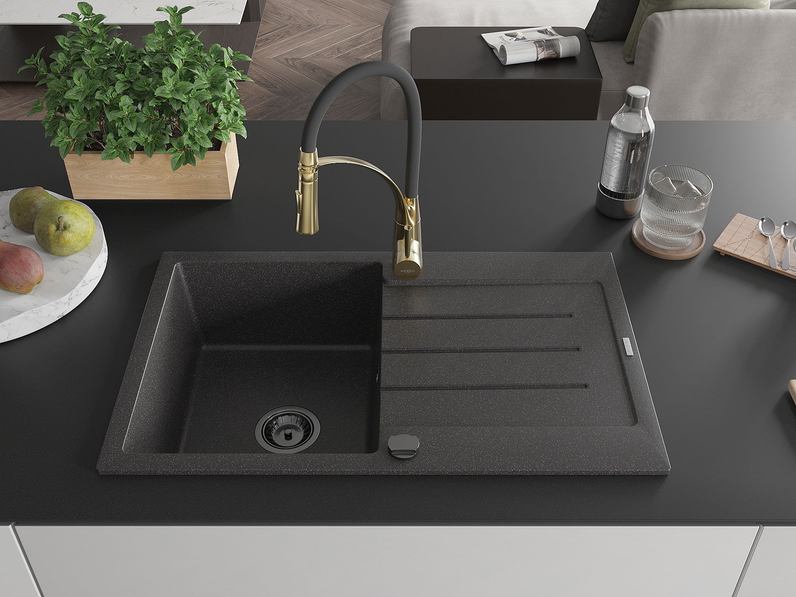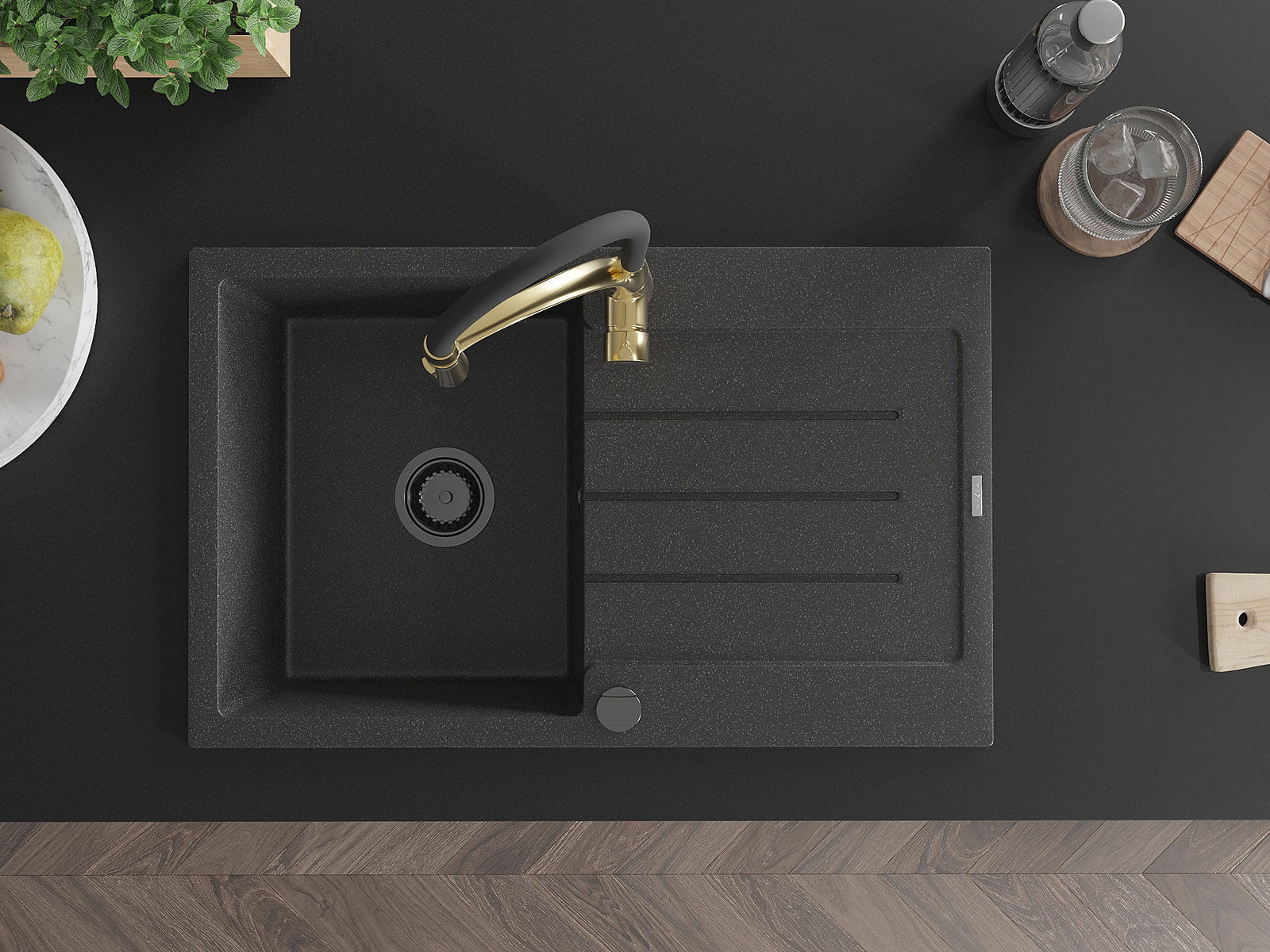 The sink is made of high quality granite. It is an elegant and, above all, practical complement to every kitchen, regardless of its style. High quality and granite durability ensure many years of use.