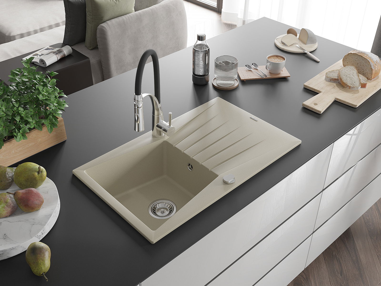 The sink is made of high quality granite. It is an elegant and, above all, practical complement to every kitchen, regardless of its style. High quality and granite durability ensure many years of use.