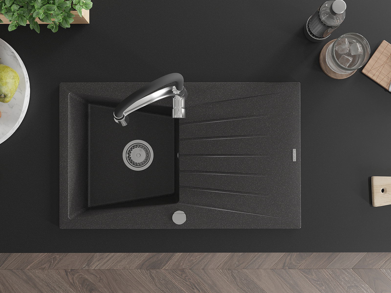 The sink is made of high quality granite. It is an elegant and, above all, practical complement to every kitchen, regardless of its style. High quality and granite durability ensure many years of use.