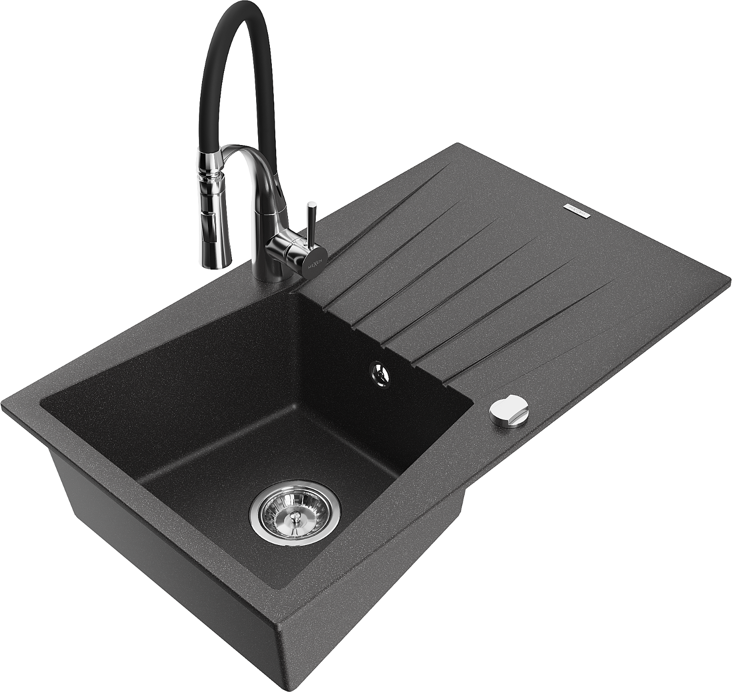 Mexen Cesar granite sink 1-bowl with drainer and kitchen tap Aster, speckled black - 6514-76-73450-07