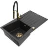 Mexen Cesar granite sink 1-bowl with drainer and Aster kitchen tap, black speckled - 6514-76-73450-57-G