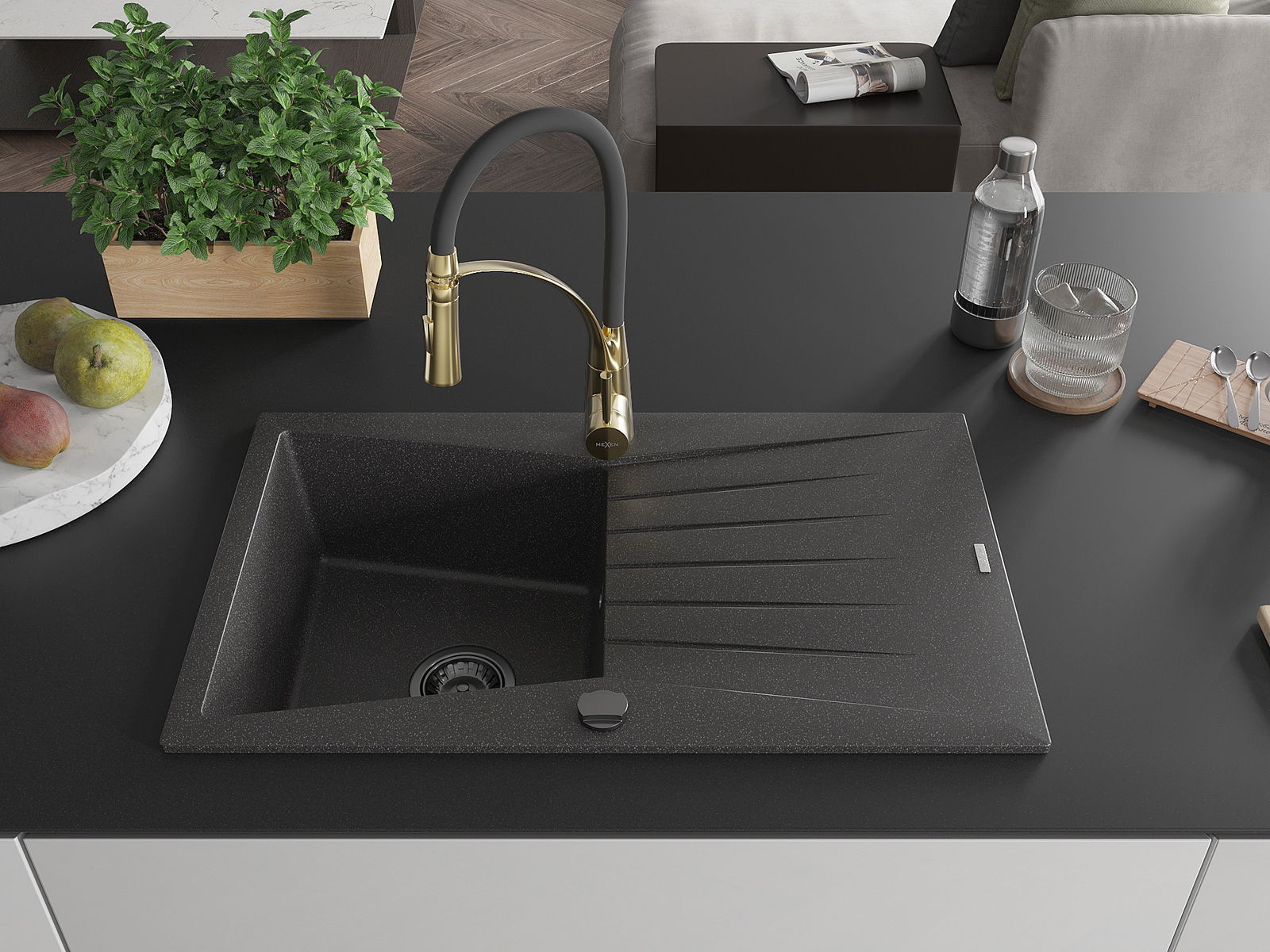The sink is made of high quality granite. It is an elegant and, above all, practical complement to every kitchen, regardless of its style. High quality and granite durability ensure many years of use.
