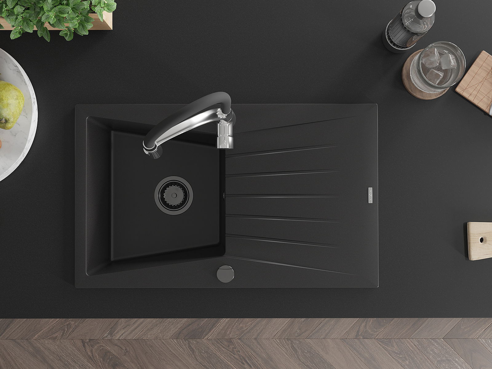 The sink is made of high quality granite. It is an elegant and, above all, practical complement to every kitchen, regardless of its style. High quality and granite durability ensure many years of use.
