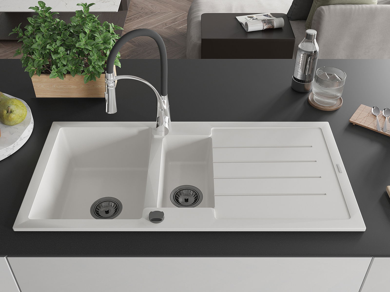 The surface of the sink is resistant to stains and discoloration, thanks to which it is easy to clean and retains its color for a long time. Aesthetic and practically complementing every kitchen.