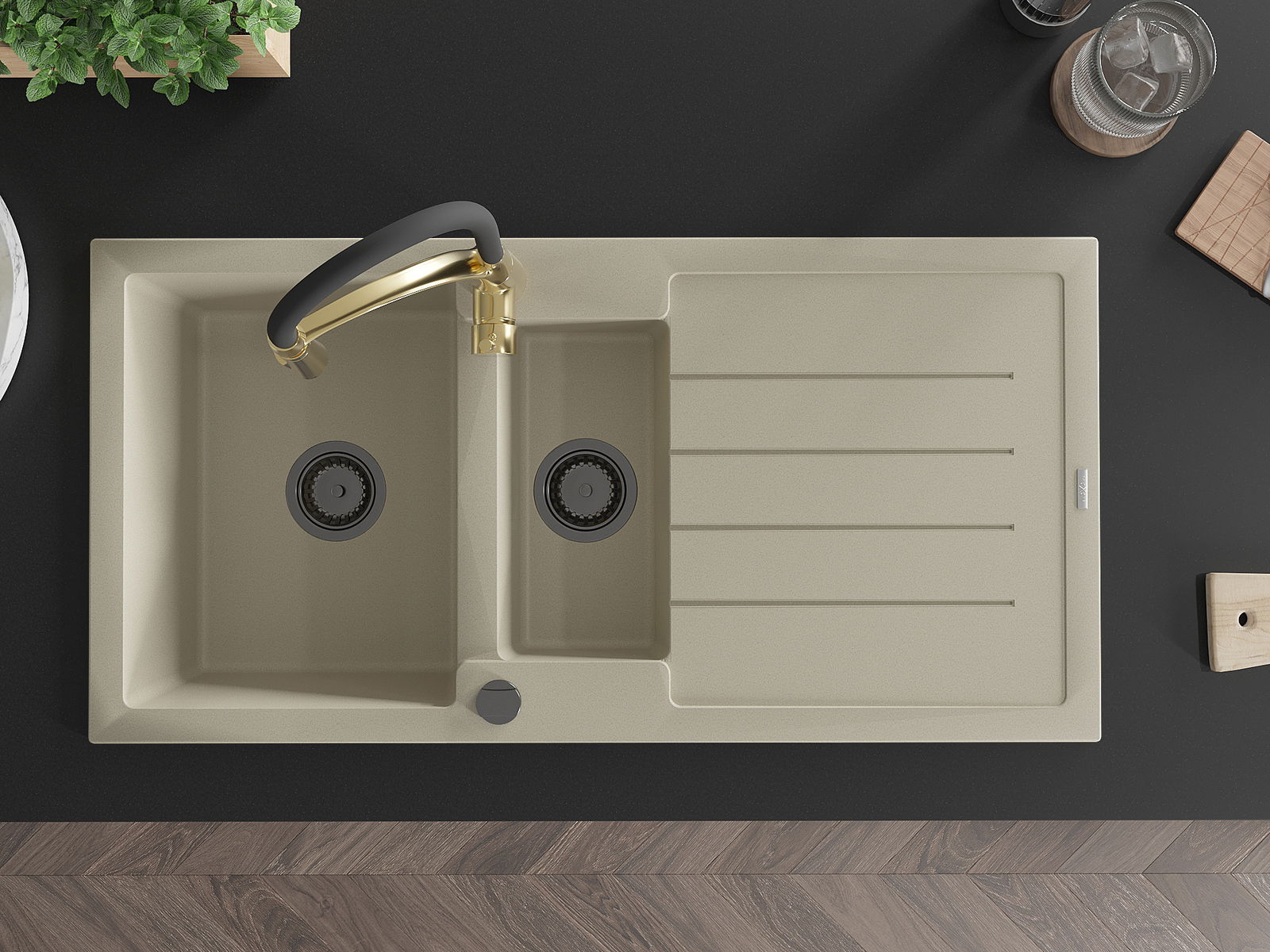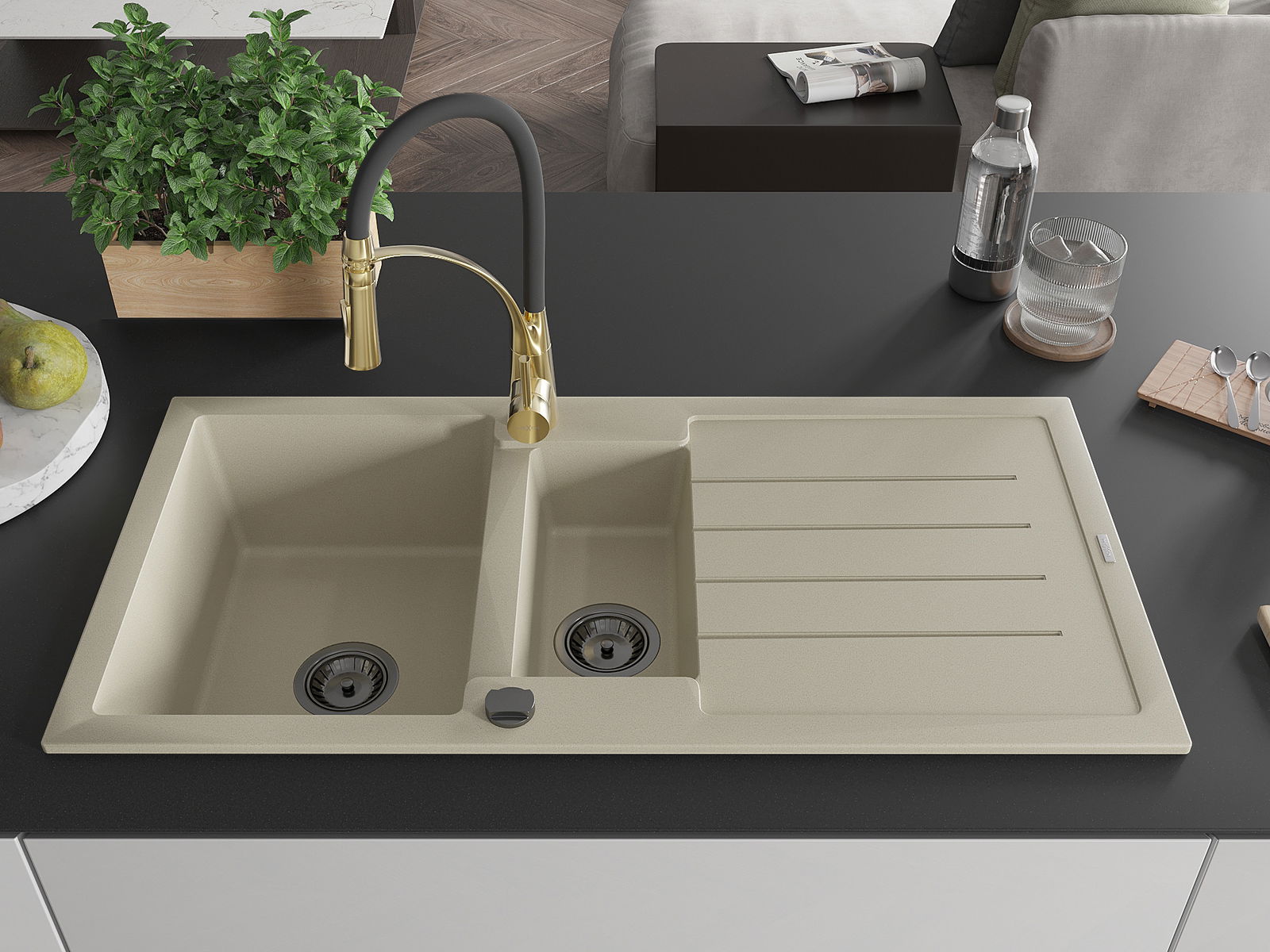 The sink is made of high quality granite. It is an elegant and, above all, practical complement to every kitchen, regardless of its style. High quality and granite durability ensure many years of use.