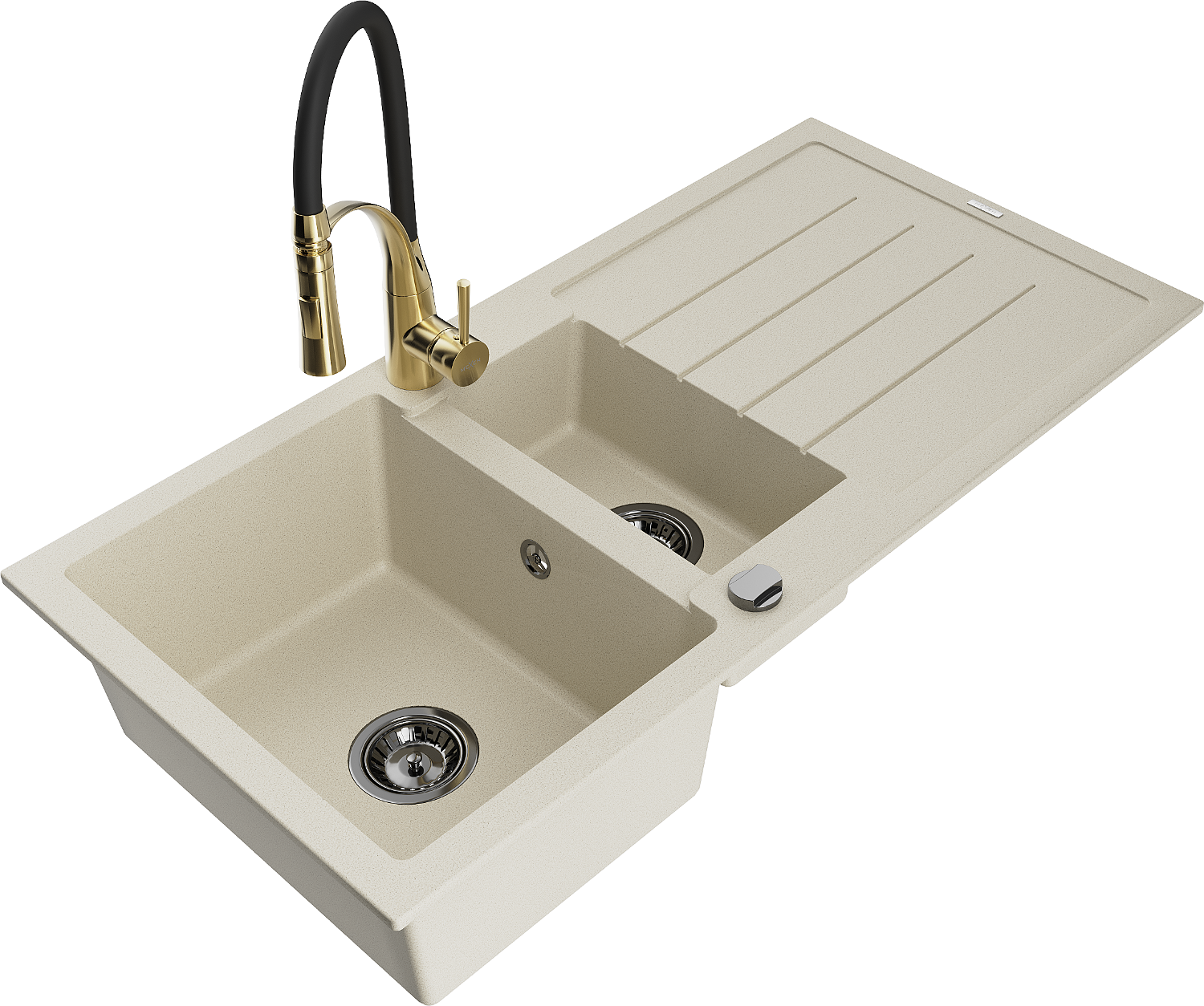 Mexen Andres 1.5-bowl granite sink with drainer and Aster kitchen tap, beige - 6515-69-73450-57-B