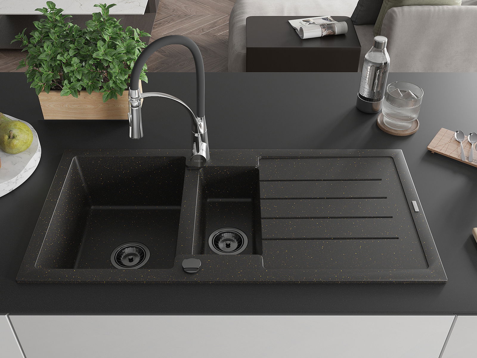 The sink is made of high quality granite. It is an elegant and, above all, practical complement to every kitchen, regardless of its style. High quality and granite durability ensure many years of use.