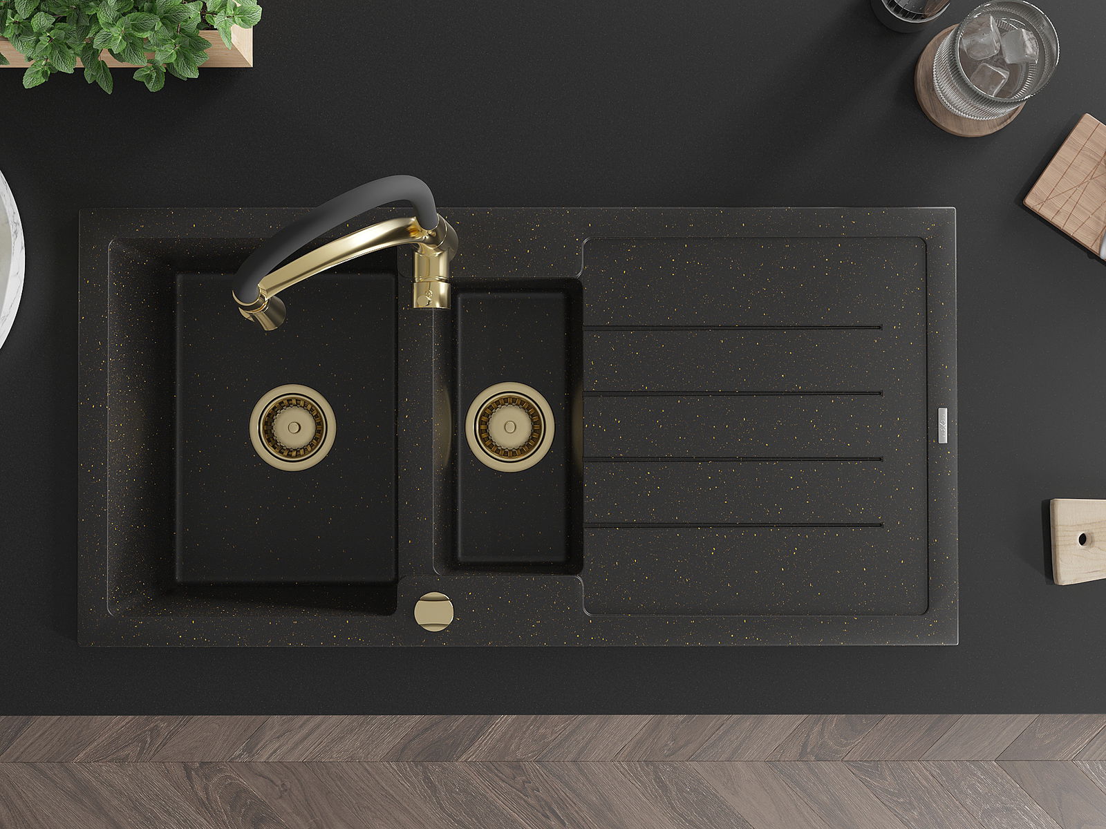 The sink is made of high quality granite. It is an elegant and, above all, practical complement to every kitchen, regardless of its style. High quality and granite durability ensure many years of use.
