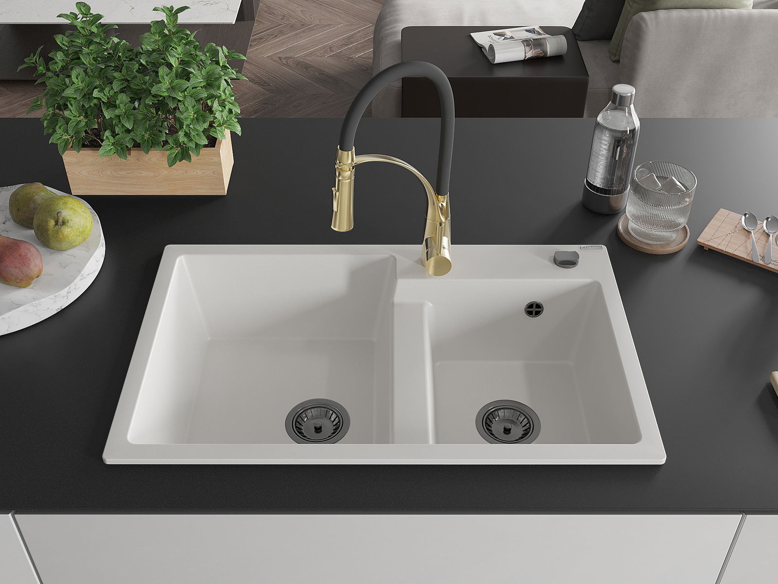 The sink is made of high quality granite. It is an elegant and, above all, practical complement to every kitchen, regardless of its style. High quality and granite durability ensure many years of use.