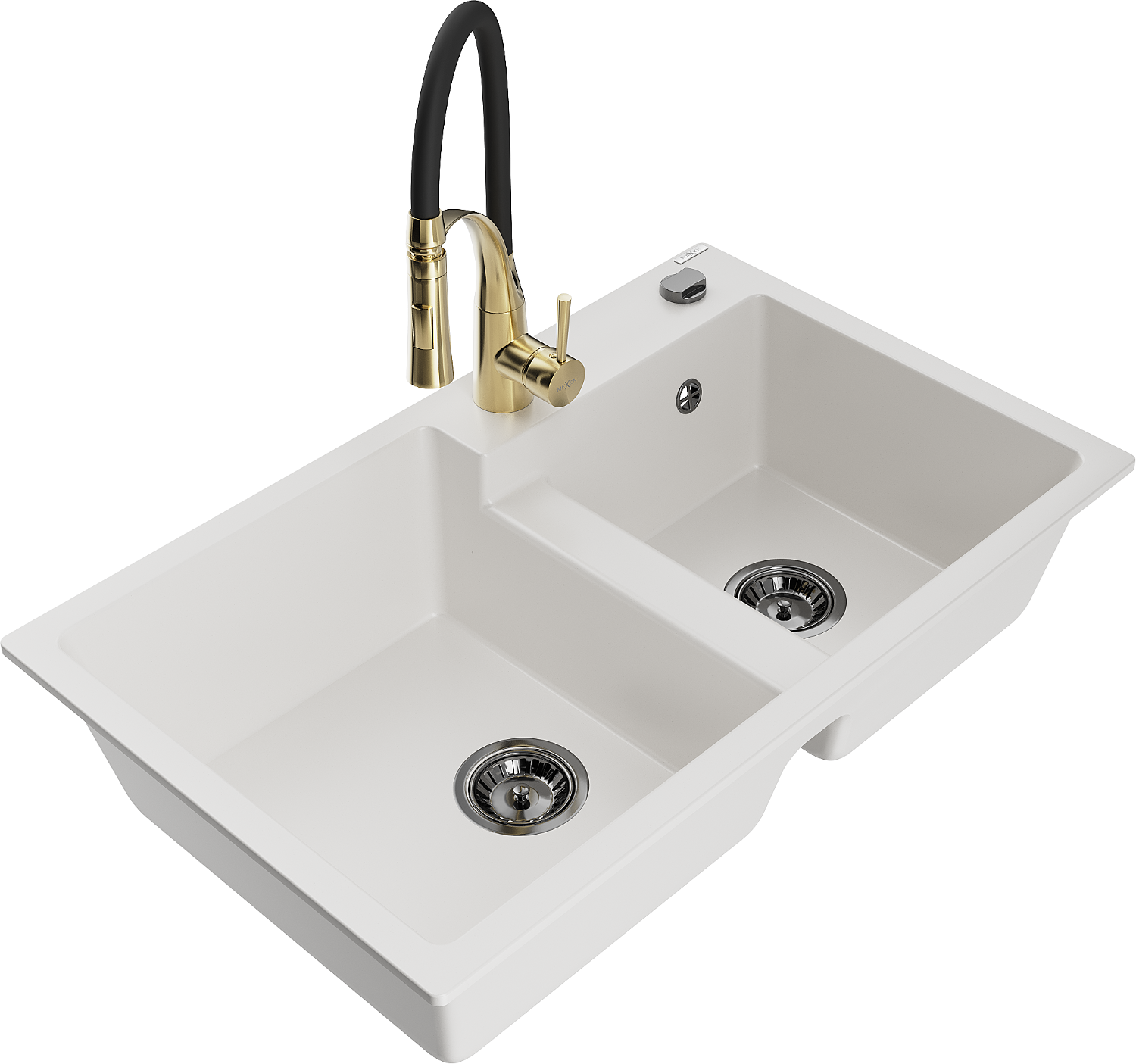 Mexen Tomas granite kitchen sink with 2 bowls and Aster kitchen tap, white - 6516-20-73450-57-B