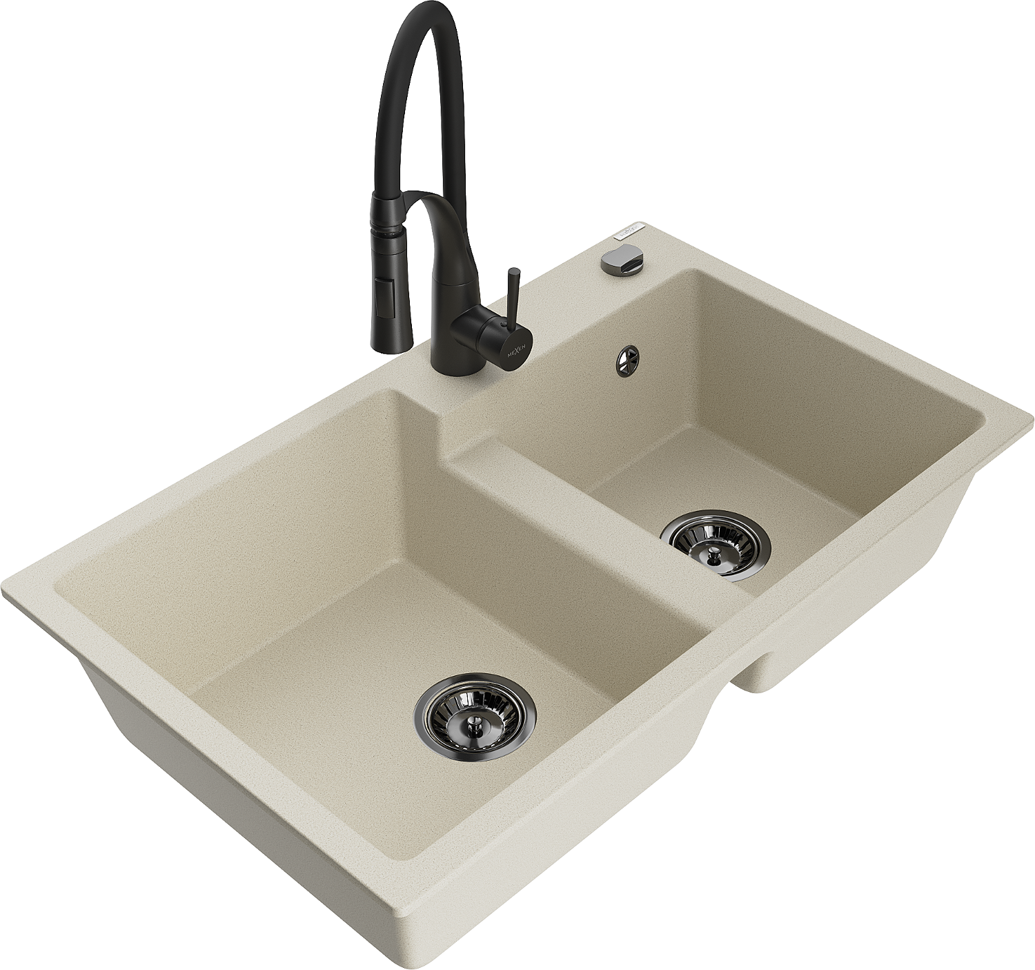 Mexen Tomas granite double-bowl sink with Aster kitchen tap, beige - 6516-69-73450-70-B