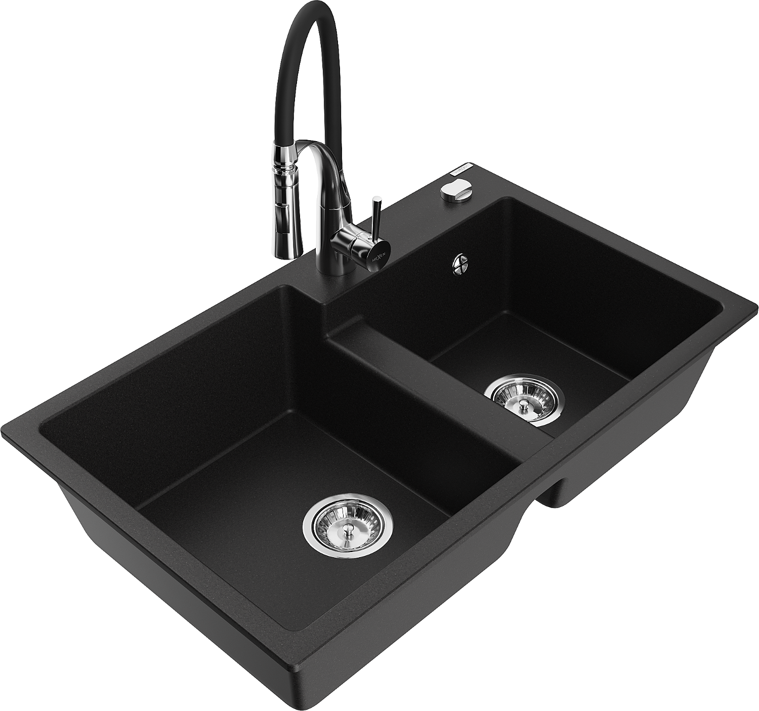 Mexen Tomas granite kitchen sink 2-bowl with Aster kitchen tap, black - 6516-77-73450-07