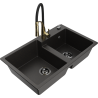 Mexen Tomas Granite Sink 2-Compartment with Aster Kitchen Tap, Black - 6516-77-73450-57-B