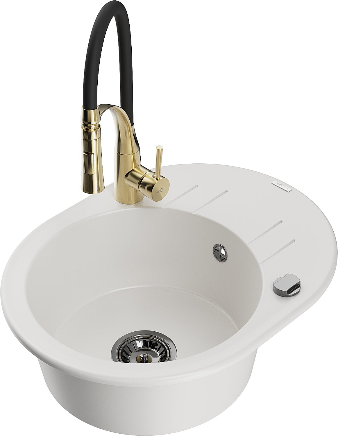 Mexen Kevin granite kitchen sink 1-bowl with drainer and Aster kitchen tap, white - 6517-20-73450-57-B