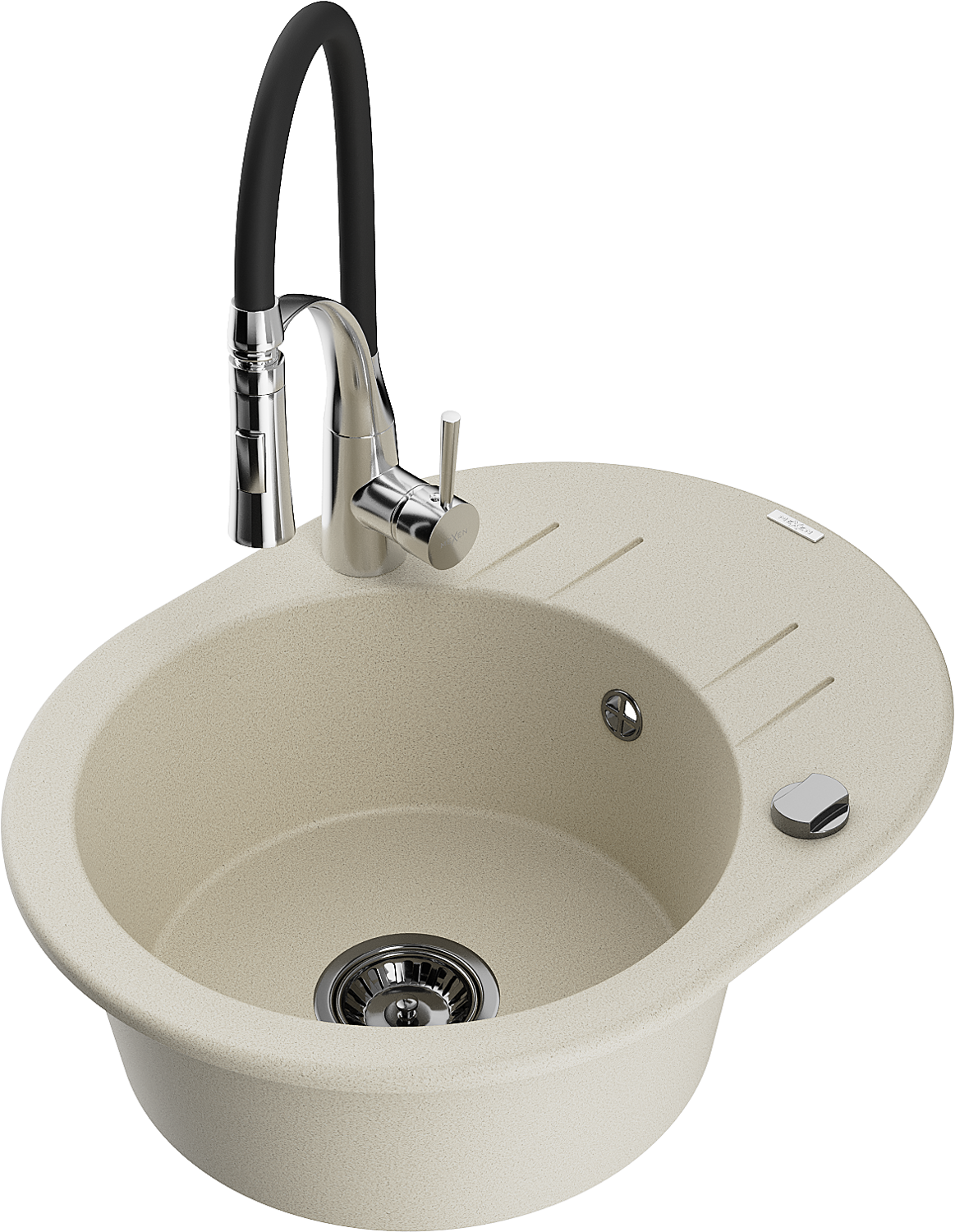 Mexen Kevin 1-bowl granite sink with drainer and Aster kitchen tap, beige - 6517-69-73450-07-B