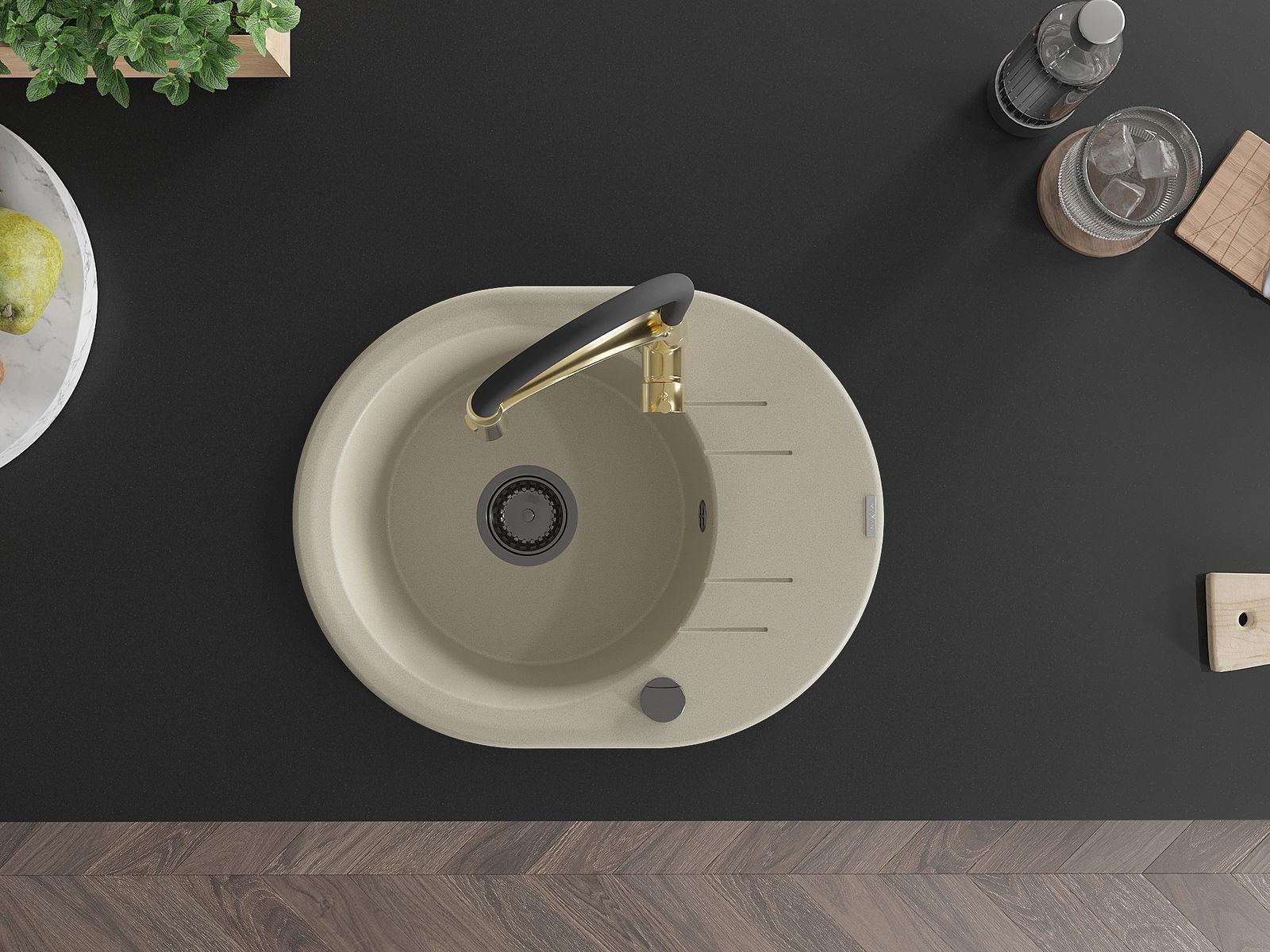 Mexen Kevin single-bowl granite sink with drainer and Aster kitchen tap, beige - 6517-69-73450-57-B