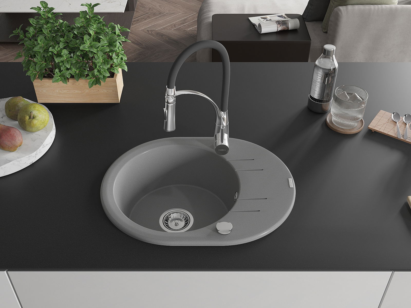 The sink is made of high quality granite. It is an elegant and, above all, practical complement to every kitchen, regardless of its style. High quality and granite durability ensure many years of use.