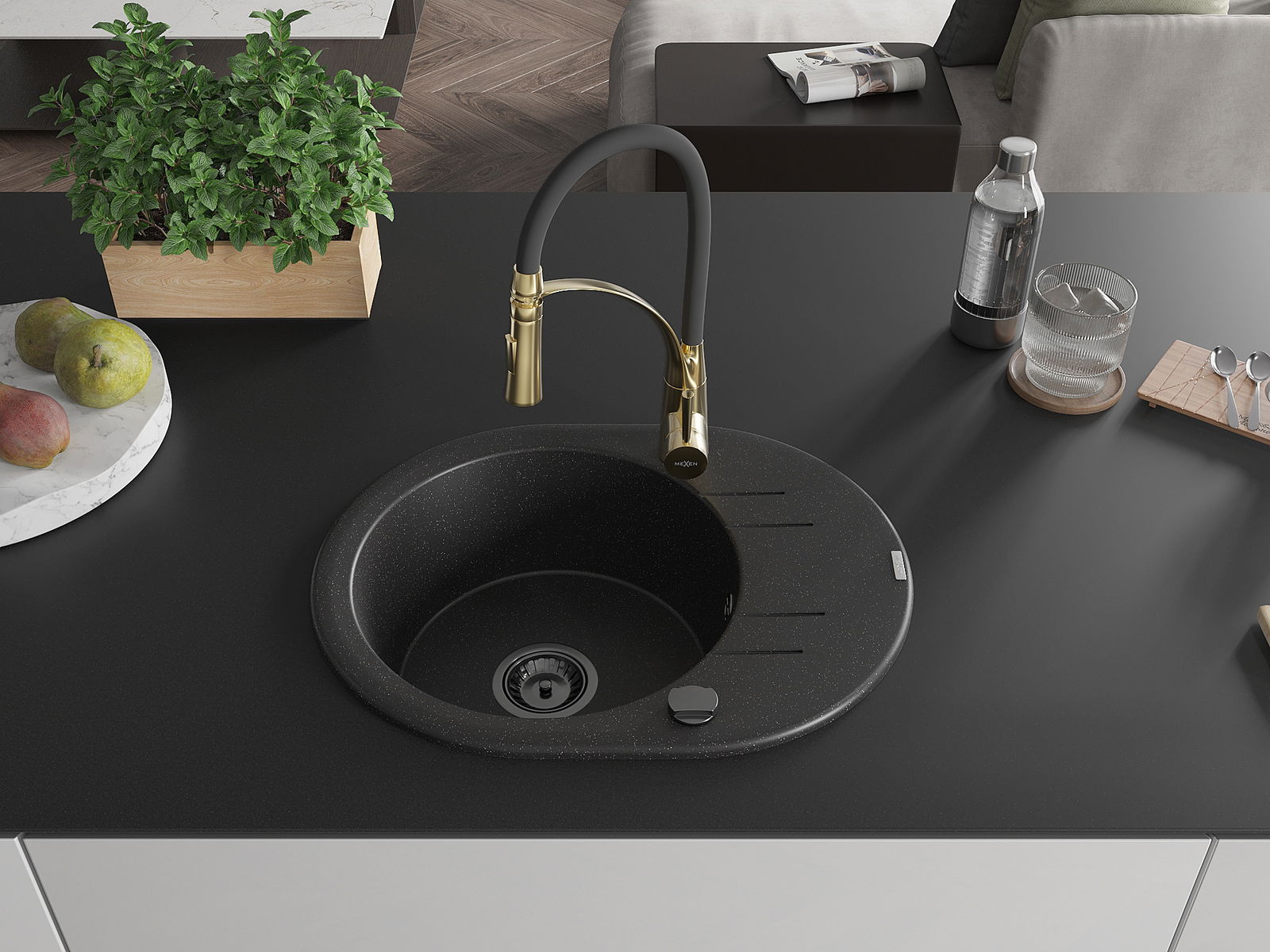 The sink is made of high quality granite. It is an elegant and, above all, practical complement to every kitchen, regardless of its style. High quality and granite durability ensure many years of use.