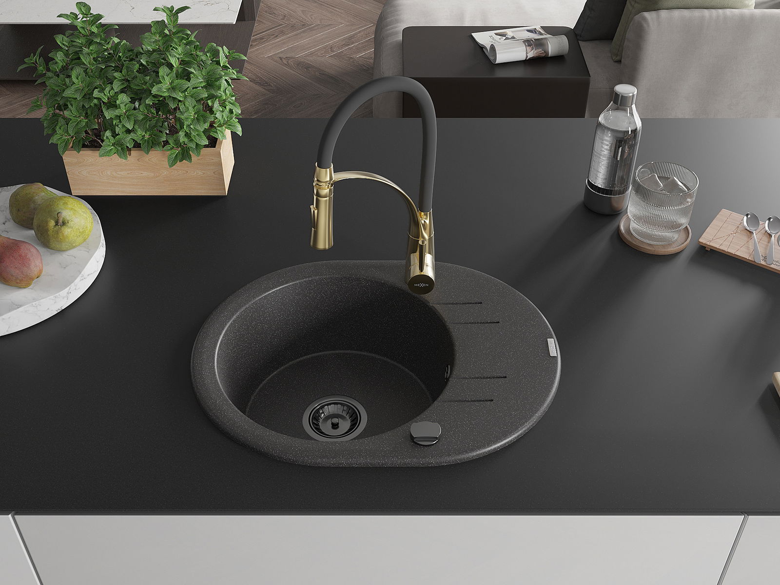 The sink is made of high quality granite. It is an elegant and, above all, practical complement to every kitchen, regardless of its style. High quality and granite durability ensure many years of use.
