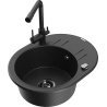 Mexen Kevin granite sink, 1-bowl with drainer and Duero kitchen tap, black - 6517-77-671600-70-B