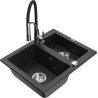 Mexen Carlos 1.5-bowl granite sink with Aster kitchen tap, grey - 6518-71-73450-07