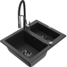 Mexen Carlos granite sink 1.5-bowl with Aster kitchen tap, black - 6518-77-73450-07-B