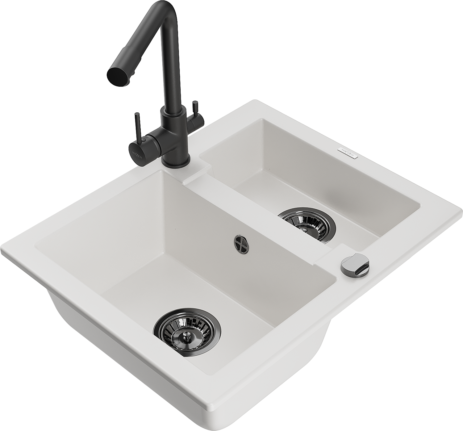 Mexen Carlos 1.5-bowl Granite Sink with Duero Kitchen Tap, White - 6518-20-671600-70